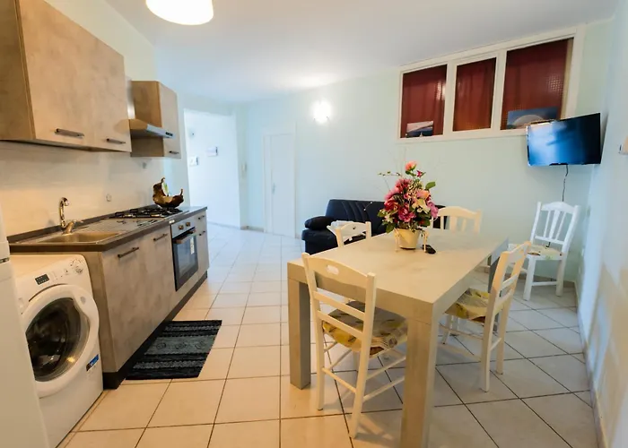 Goście mogą korzystać w obiekcie noclegowym z pełnowymiarowej kuchni oraz delektować się posiłkami w jadalni na świeżym powietrzu. Dania kuchni włoskiej serwowane są również w Osteria da Monna Valeria w odległości 450 metrów. 1-pokojowy apartament położony jest około 10 min spacerem od najbliższego przystanku autobusowego - Otranto Porto.